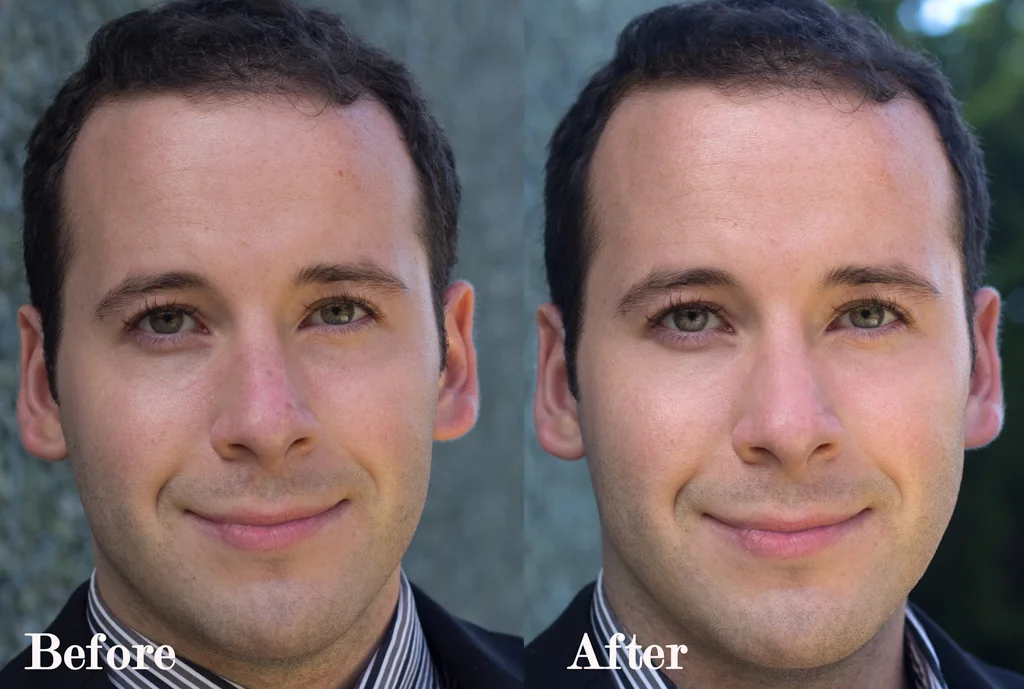 I did some minor retouching to enhance his already handsome face: evened out blemishes and skin tone and roughness. I also made his eyes pop a bit more.
