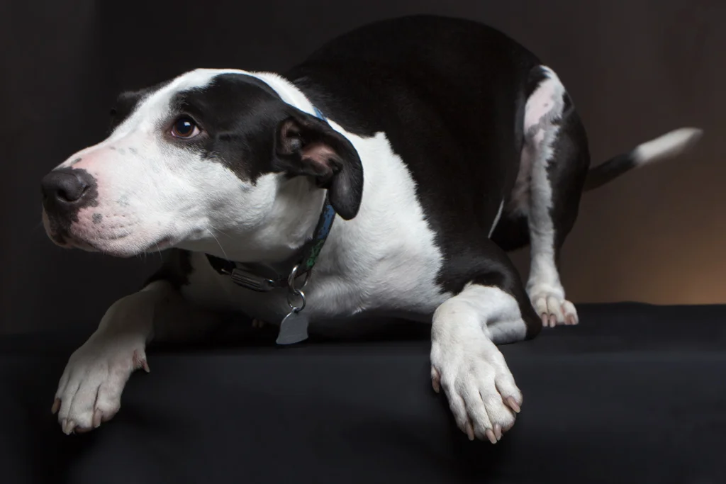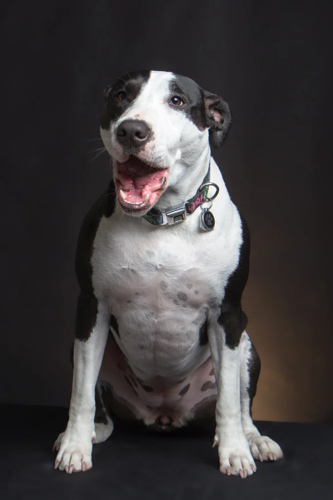 Early last year I was invited by a colleague, Keith Bodziak (www.keithbodziak.com), to photograph Kristi and her dog Marli, a Bull Terrier/Great Dane mix. This was my first attempt at pet portraiture outside of photographing my family's dogs, who are older, less active, and familiar with me and where I'm photographing them--at home--and my SF SPCA documentary project, which had a distinct style and goal. Marli, affectionately called, "Marli Moo," is an adorable and high-energy dog, whom I'd never met before. Our portrait session was at the City College of San Francisco Photography Department studio, where she'd never been. It was fun and challenging to photograph her and in the process, I was reminded of a couple things: