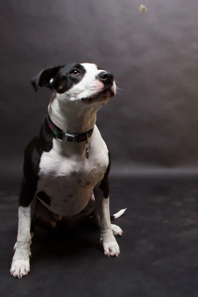 After awhile Marli Moo got antsy so we gave her another break. I still wanted to try getting some photos of just her. Luckily, I had finished volunteering at the SF SPCA that morning and had some leftover treats. I remembered them and I asked if feeding them to Marli was ok. I got the go-ahead. The treats worked. They also allowed me to establish more of a rapport with her, since suddenly, I was a source of yumminess, aka her new best friend. Being flexible with Marli Moo and making her modeling experience more fun (treats, playing with momma, establishing rapport) allowed me to capture better photos of her.